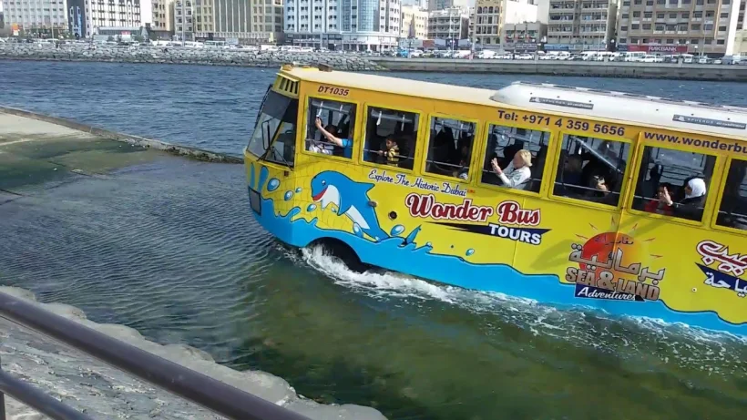 There are many beautiful places to visit in Dubai. Many tourists visit every year to roam here To travel to Dubai, you will also be traveling in a bus or a metro train, but today we are going to tell you about the bus floating on the water. This Dubai bus just floats in the water along the road. Let's know some more things about it.