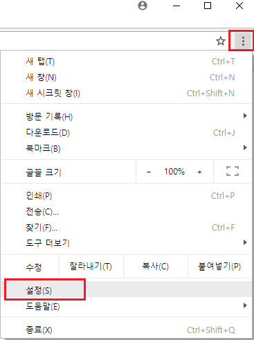 구글 크롬의 설정으로 들어가서 원인을 확인해 보겠습니다.