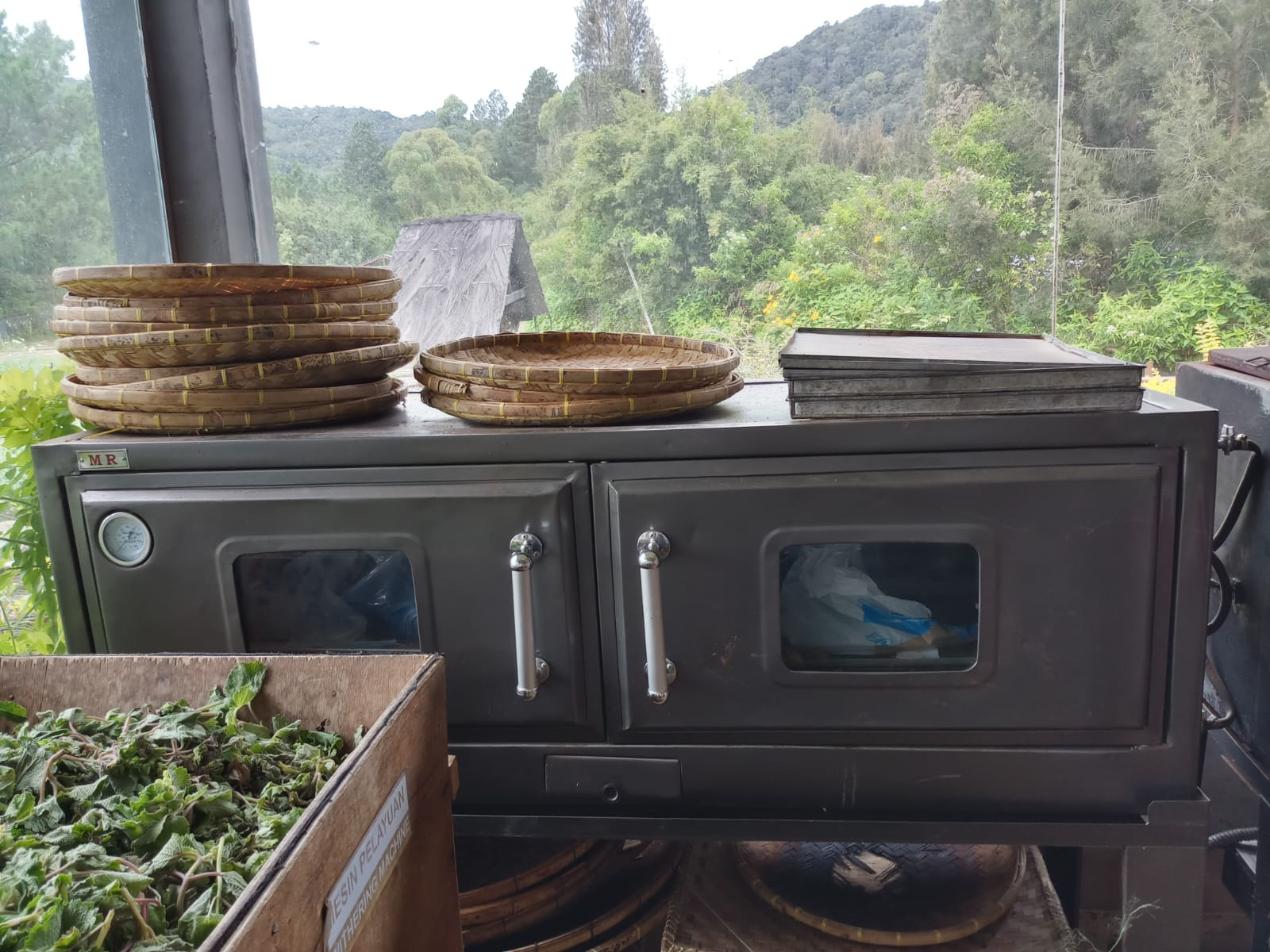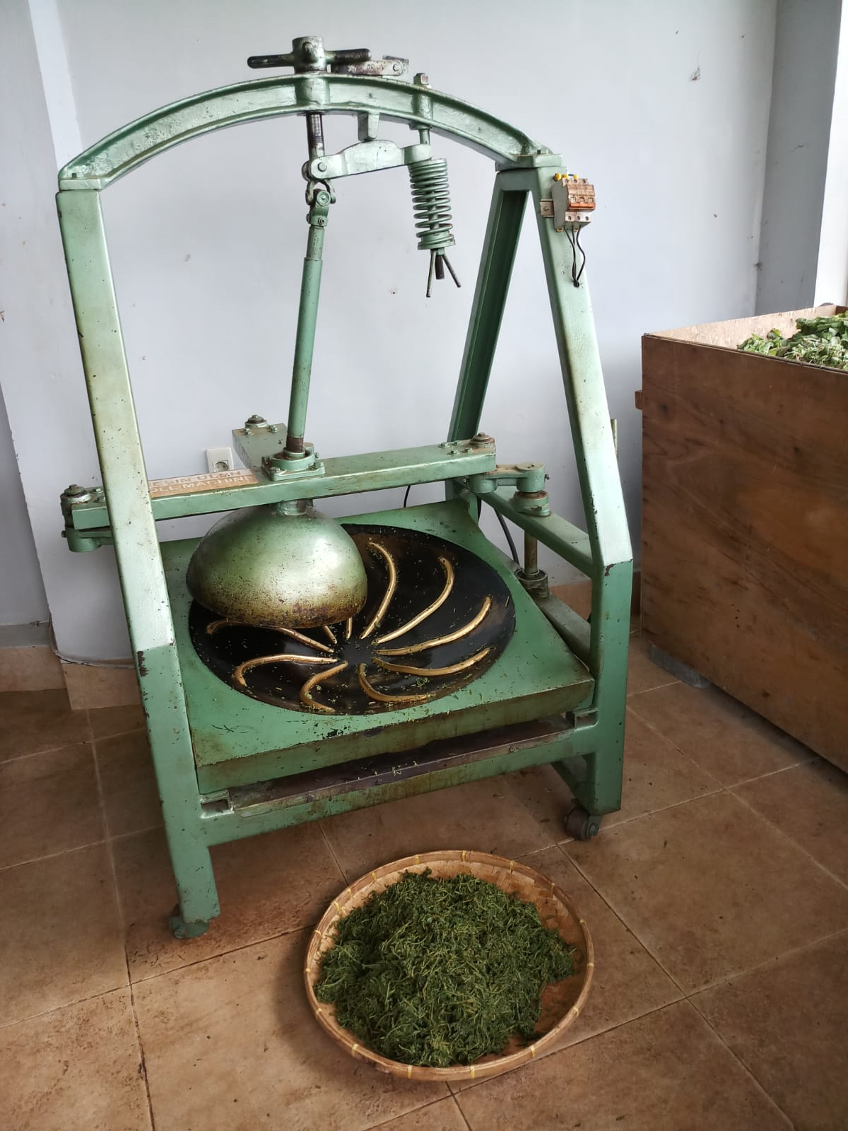 The freshly harvested tea leaves were left to wither to reduce the moisture content. The temperature, humidity and air flow can be controlled with the machine and it helps to ensure even withering.