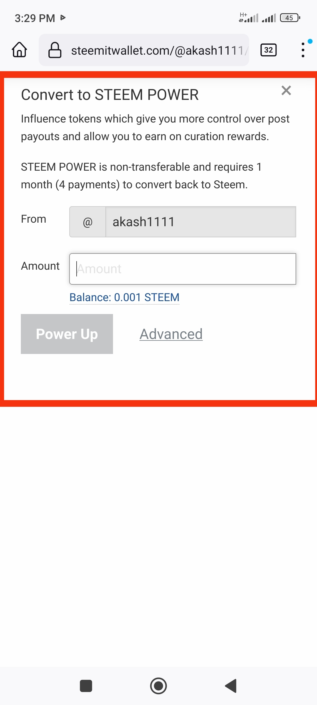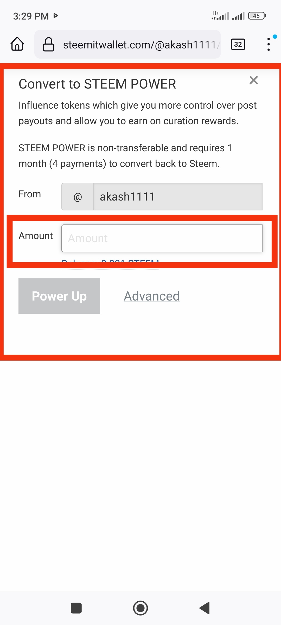 Then enter the amount of steam you want to power up and put your memo key in the memo box below. Then you can see the amount of steam you have powered up.