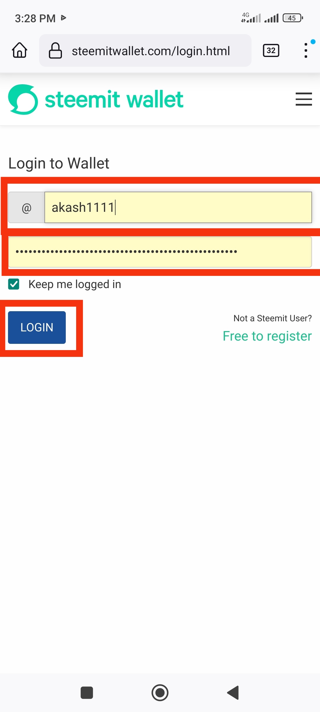 Login to the wallet with the private posting key.