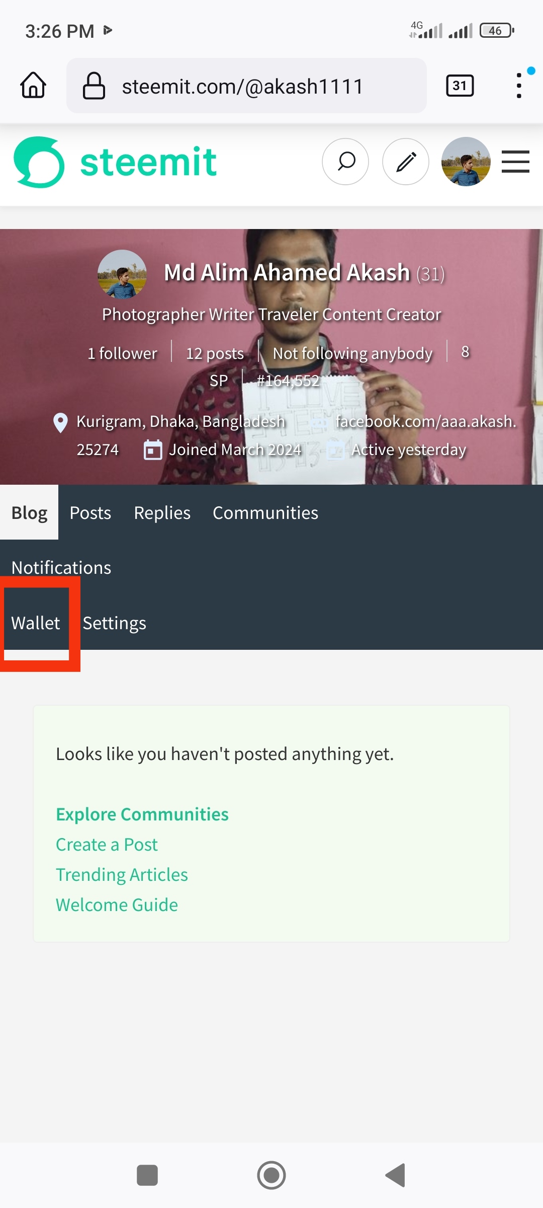 First go to Steemit account. Then click on wallet.