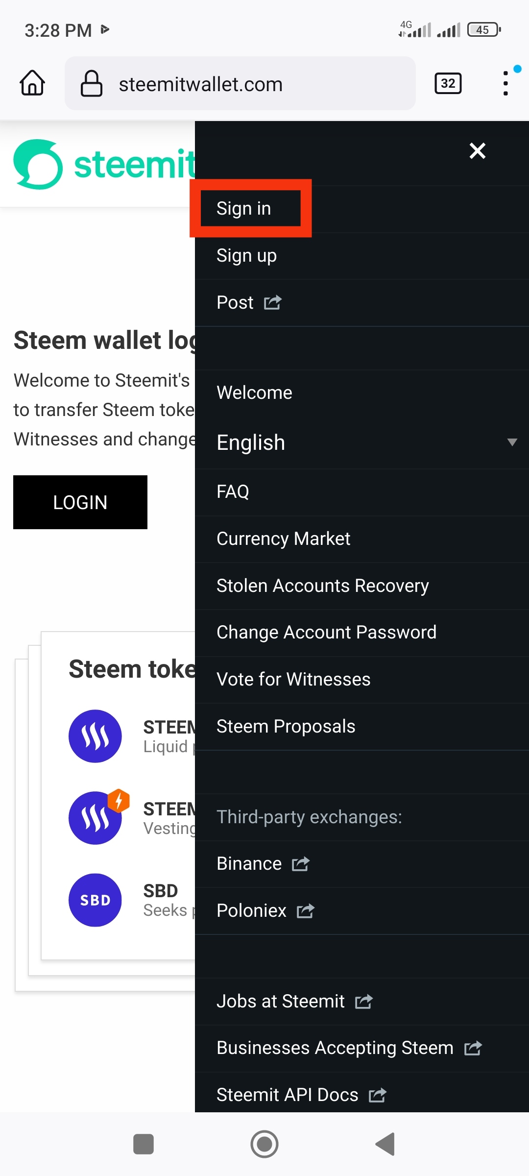 First you go to your Steam account. Then go to your wallet and login with private posting key.