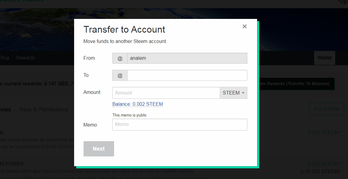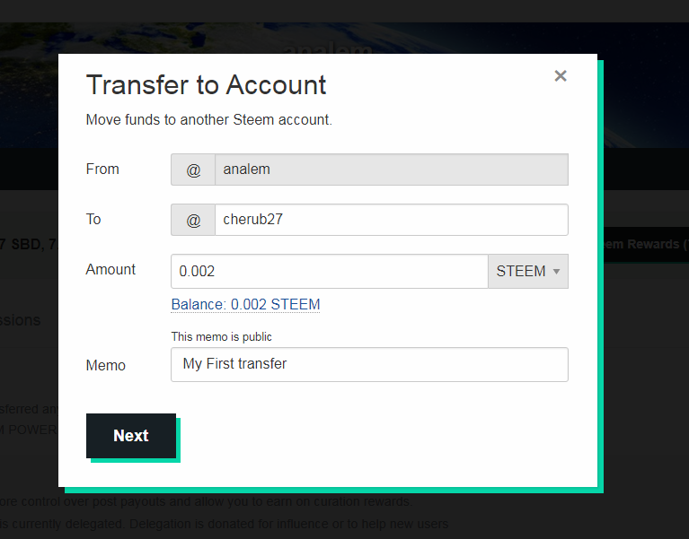 Currently, I know how to transfer my steem token to another users account and these are the various steps: