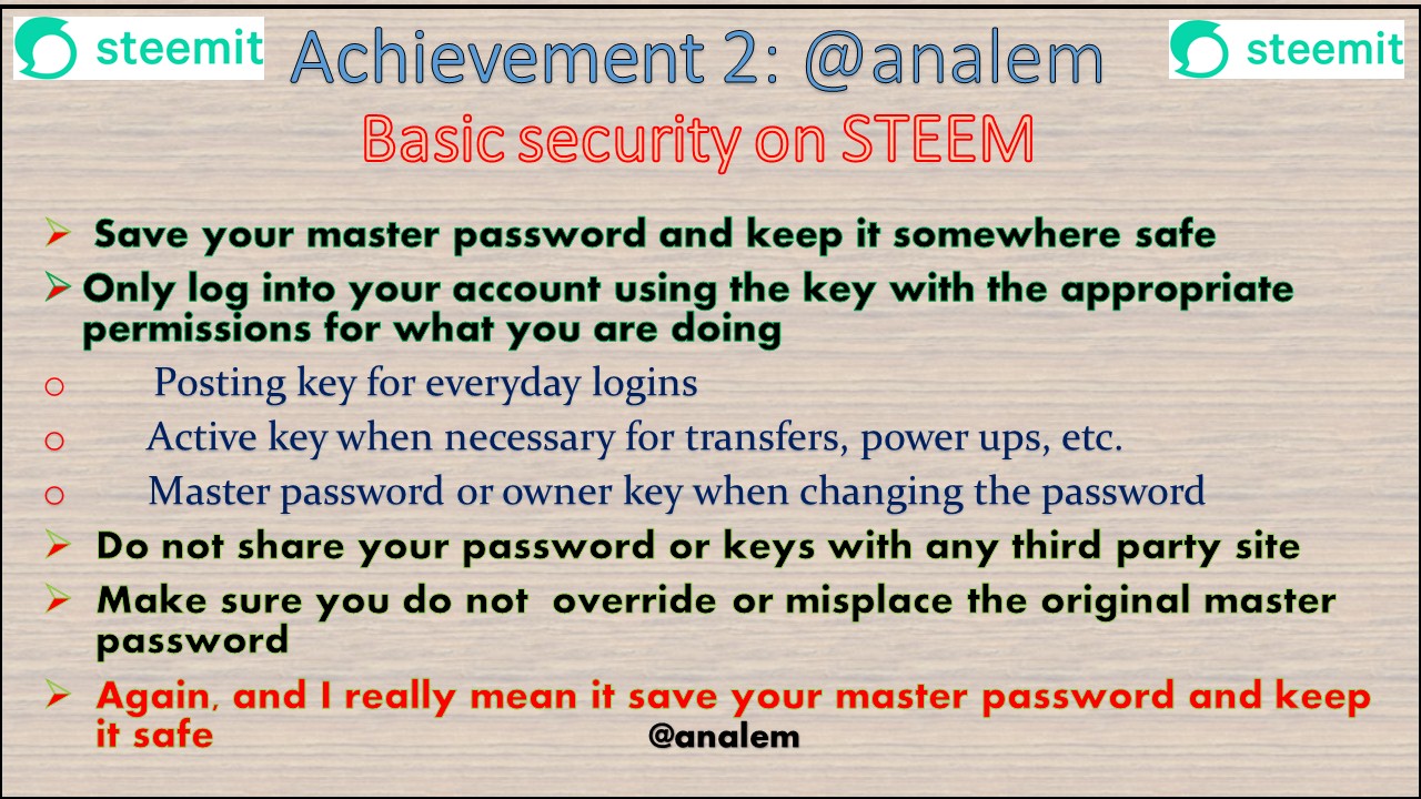 Please be informed that when you lose your steemit passwords or keys there are no other means that you can get back your account. Since steemit accounts of great importance values, let us try our possible best not to lose our master password by keeping it somewhere safer.