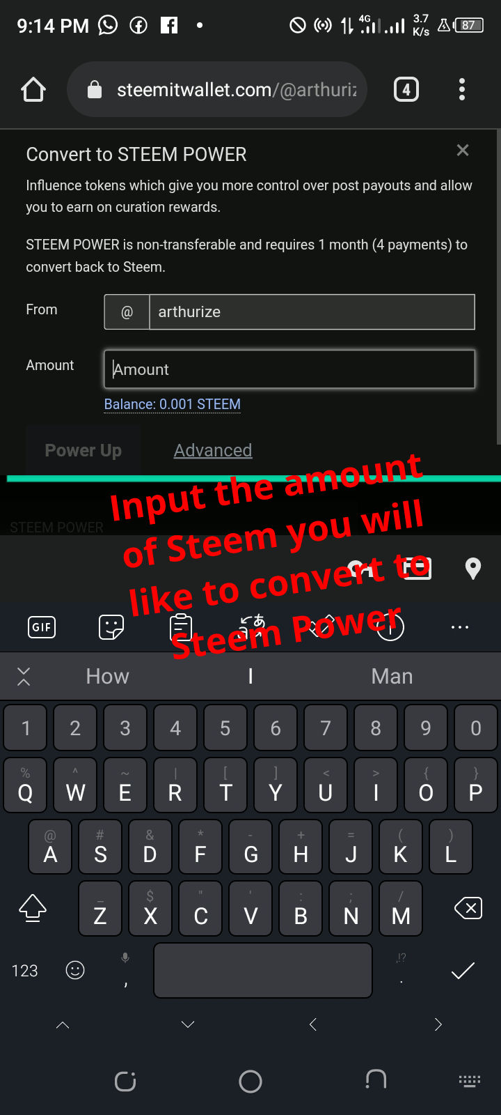 STEP 4: Input the amount of Steem you want to convert to "STEEM POWER"