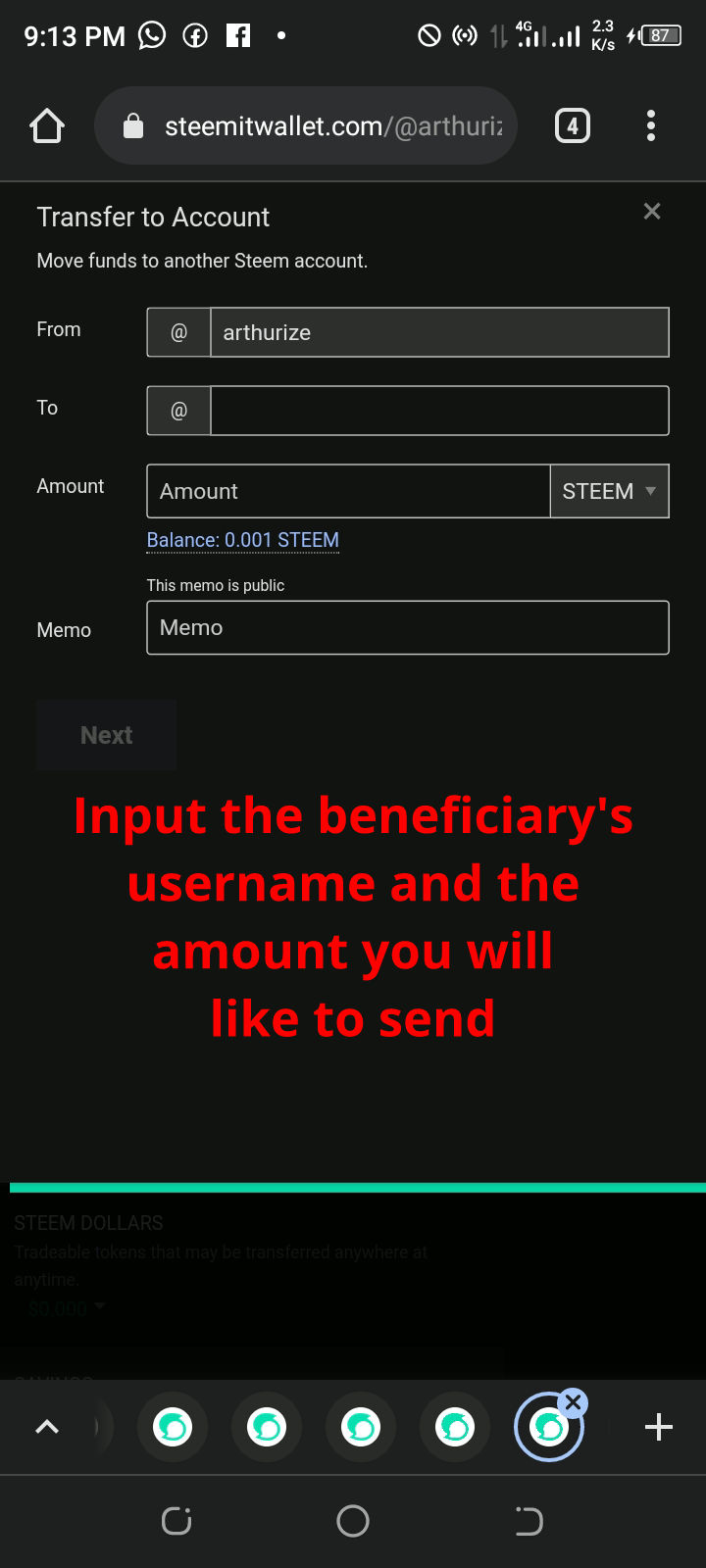 STEP 4: Input the beneficiary's username and the amount you want to send