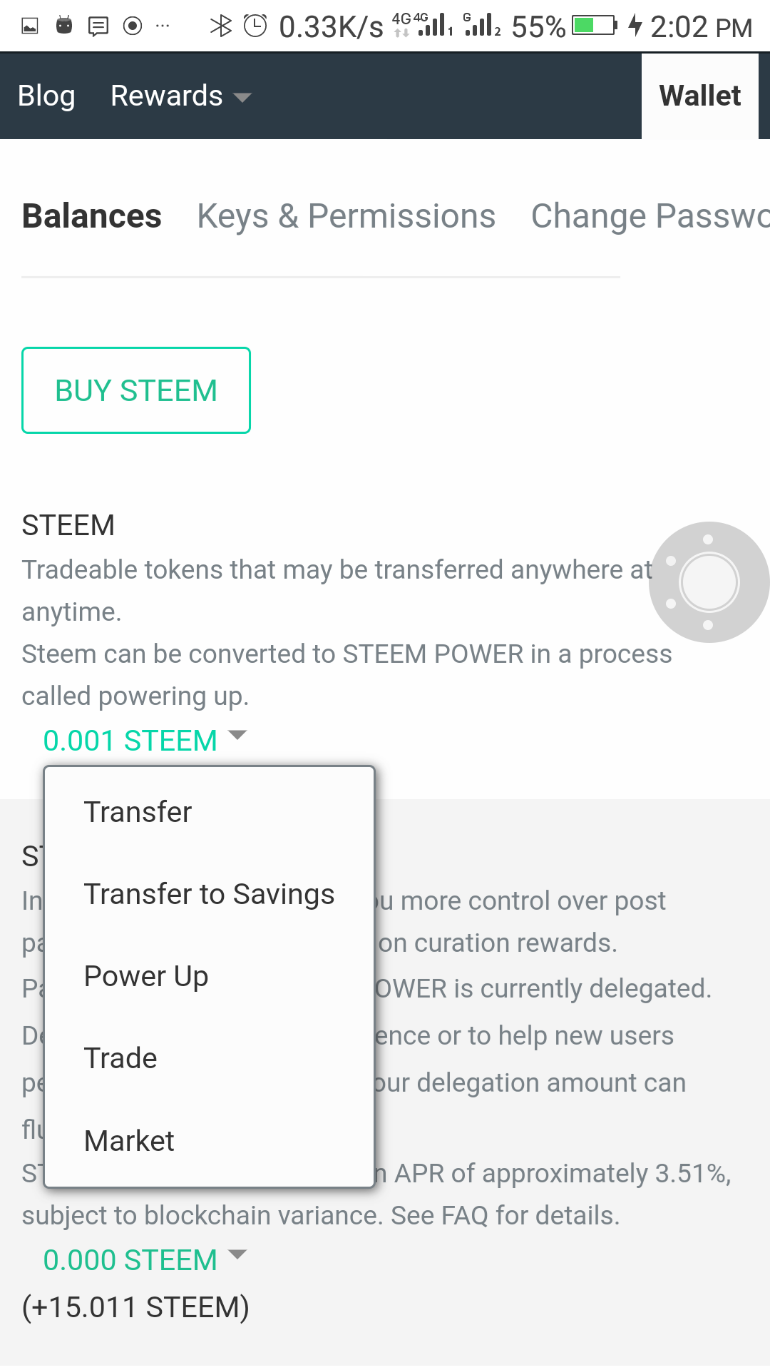 -with wallet open, click on the drop down button besides the steem valve you have(mine being at 0.001)