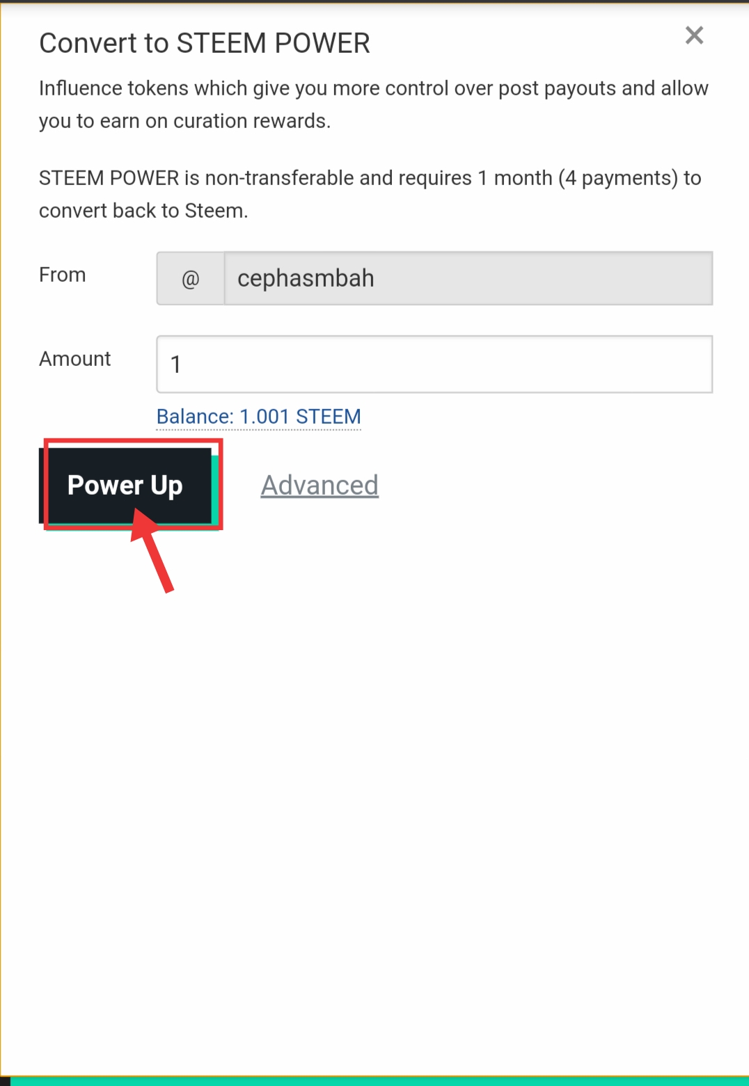 Step3 I then finally, input amount to power up