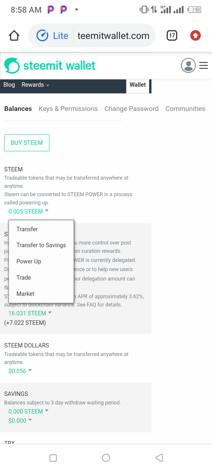 STEP THREE: Click on the arrow pointed down on steem.