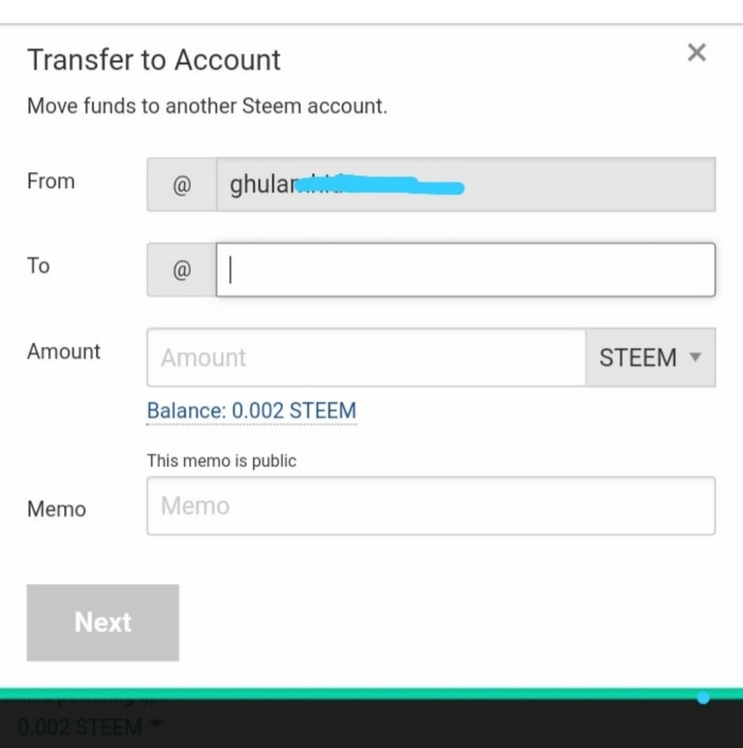 Dialogue box will appear then fill in with the username of the person you’re transferring the money to and the amount you are transferring.