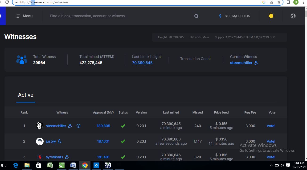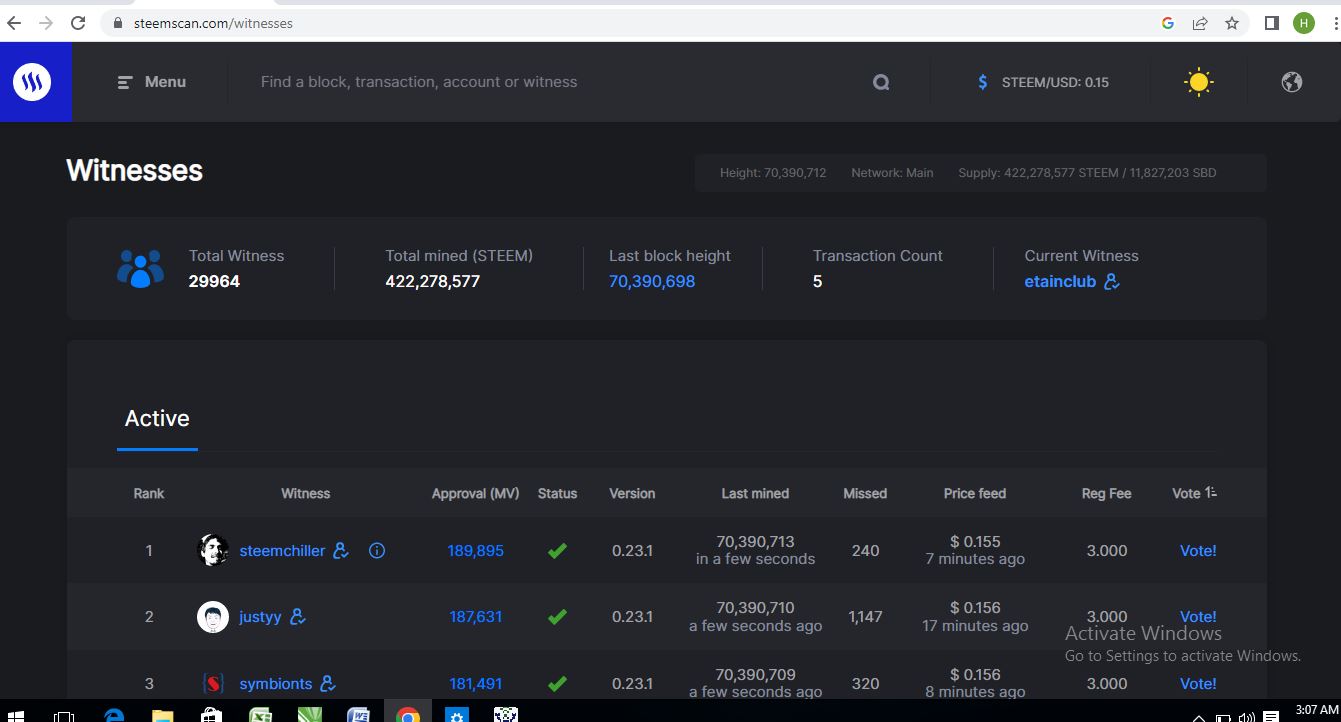 When we select Witnesses Section from the Menu, we can see 29964 of Total Witness and 422,515,017 Total mined (STEEM).