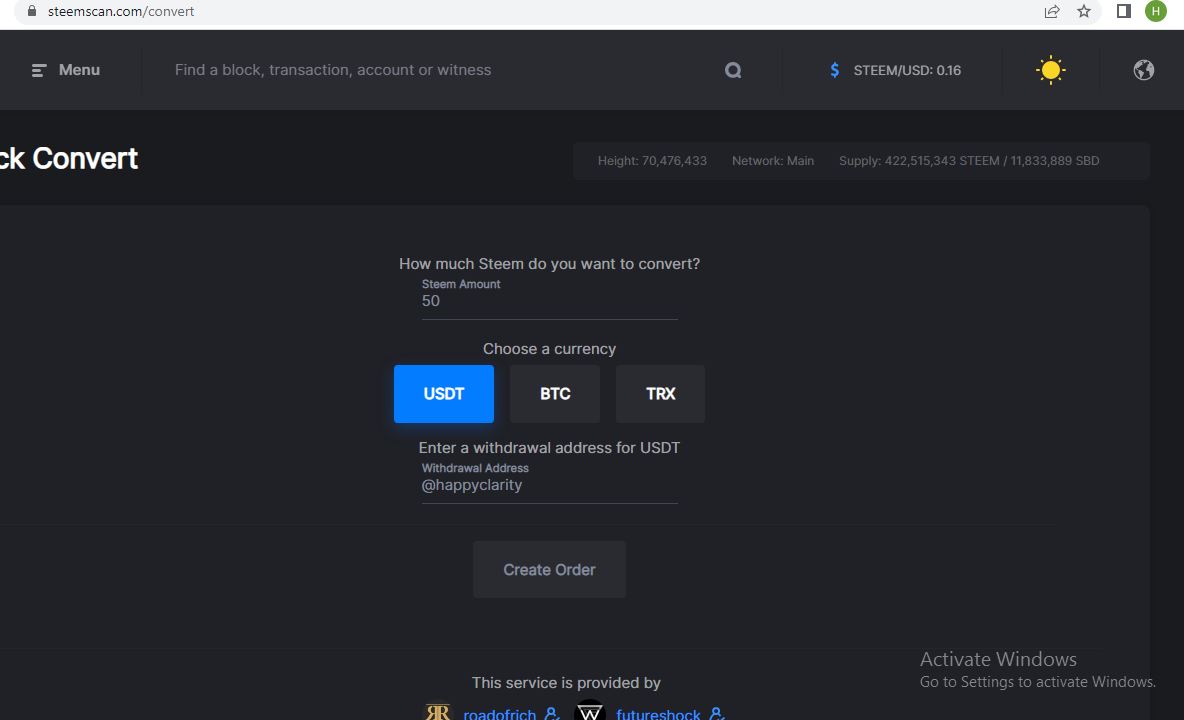 Using the "Quick Convert Option," we may quickly convert our cryptocurrency on the steemscan.com website. Additionally, we can exchange our steem for USDT, BTC, or TRX.