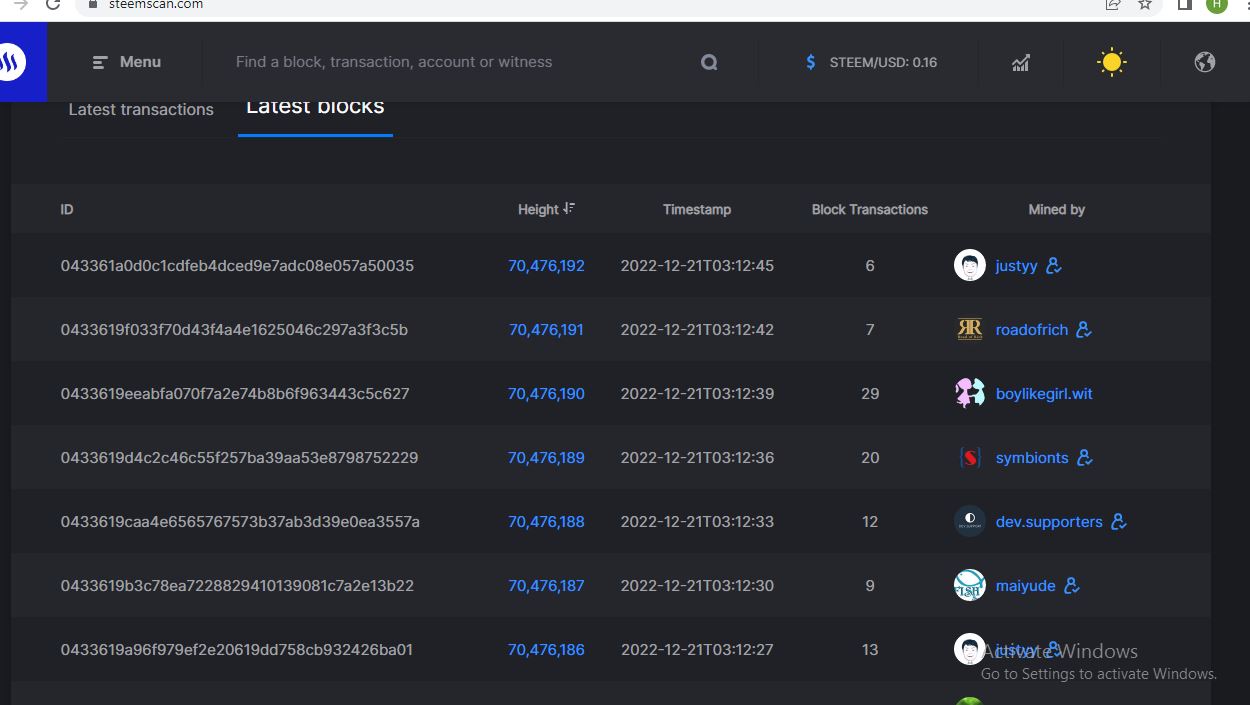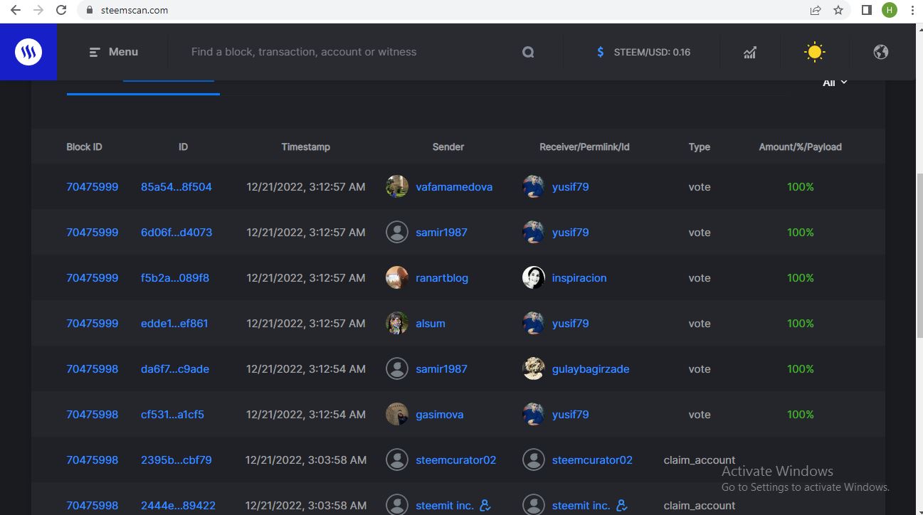 In this section, we can check all the latest transactions including vote, comment and claim rewards.