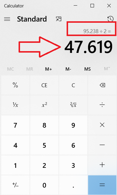 Para estar en el club5050 debo dividir este saldo en 2, y el resultado es 47.619, con esto debo hacer Power Up: