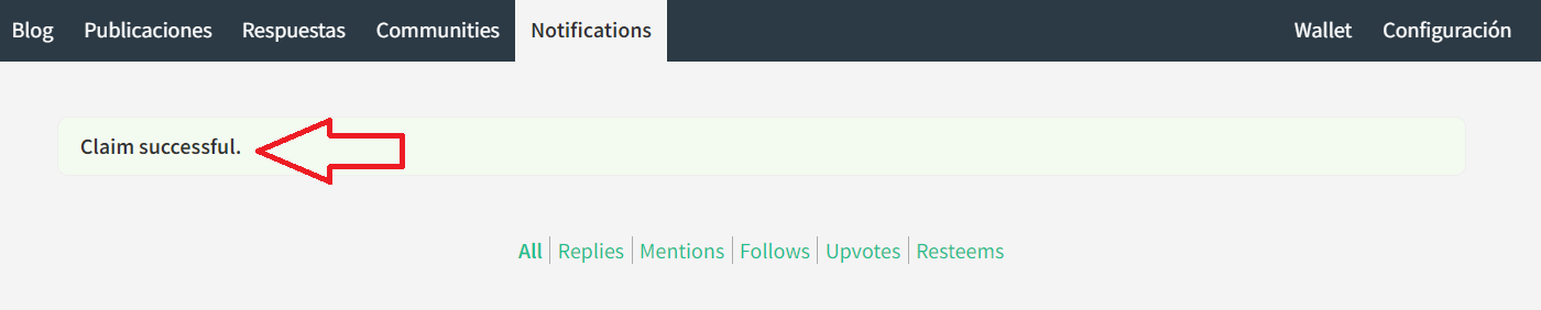Al hacer clic en Reddem verás el mensaje Claim successful: