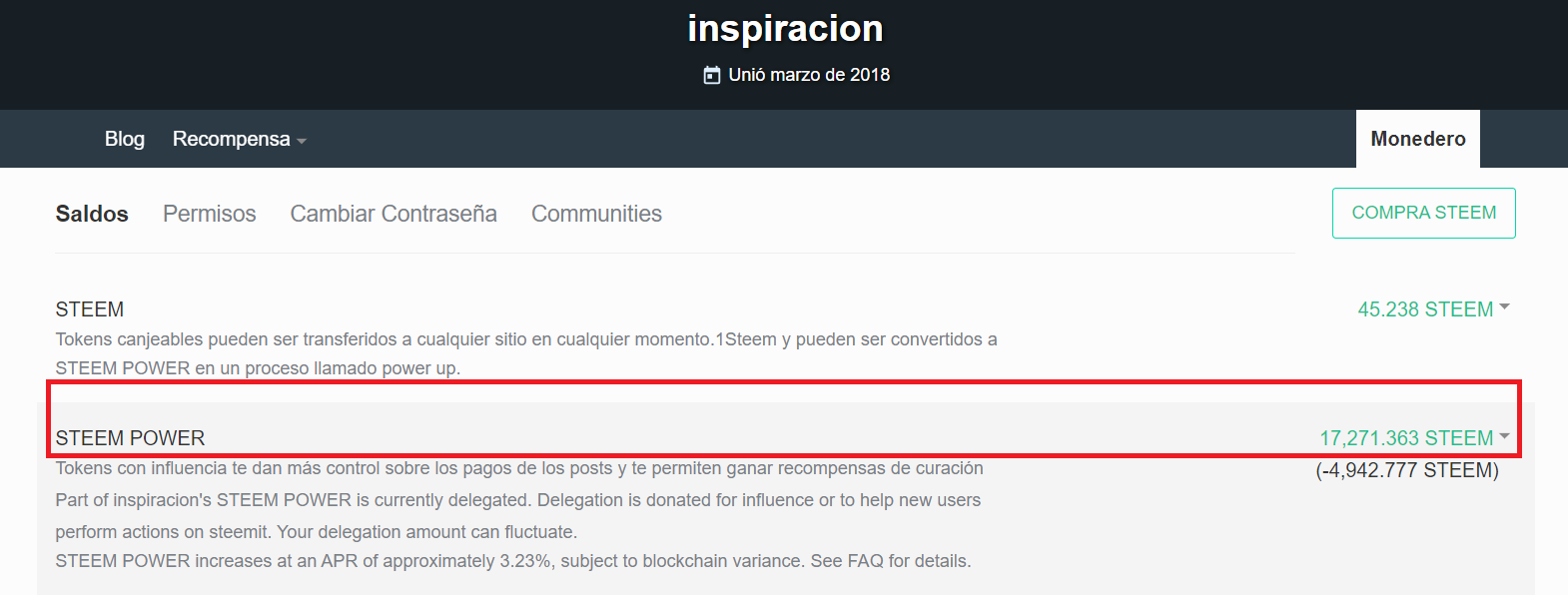 Para chequear estos saldos puedes utilizar la herramienta https://steemworld.org/@user (explicación de cómo usarla en el Logro 5).