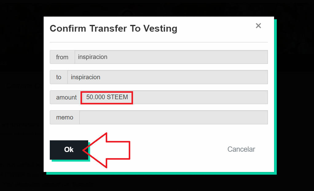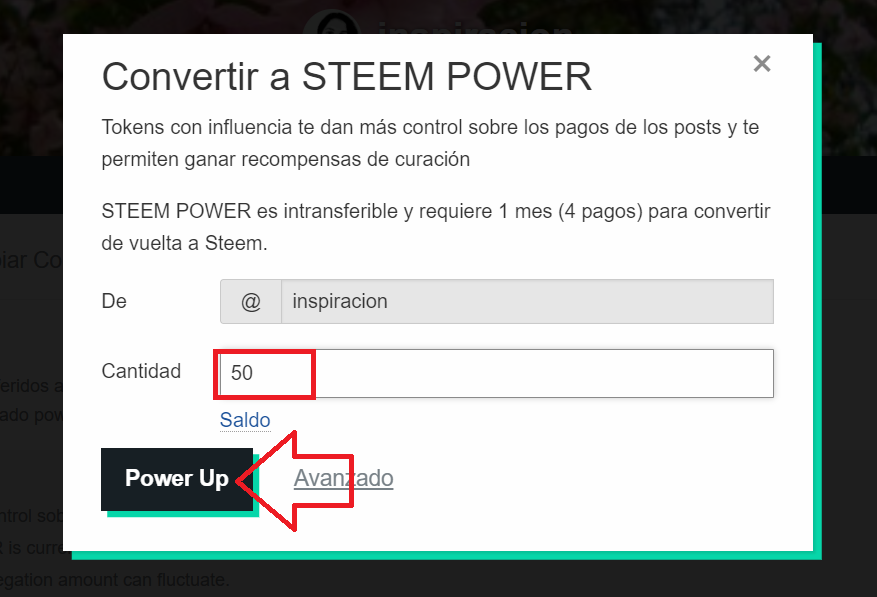 To round this figure I have placed 50 STEEM. It is important that our figure is always in favor of the Power Up because we can be left out due to a calculation error, so it is always better to place one more amount in favor of the Power Up: