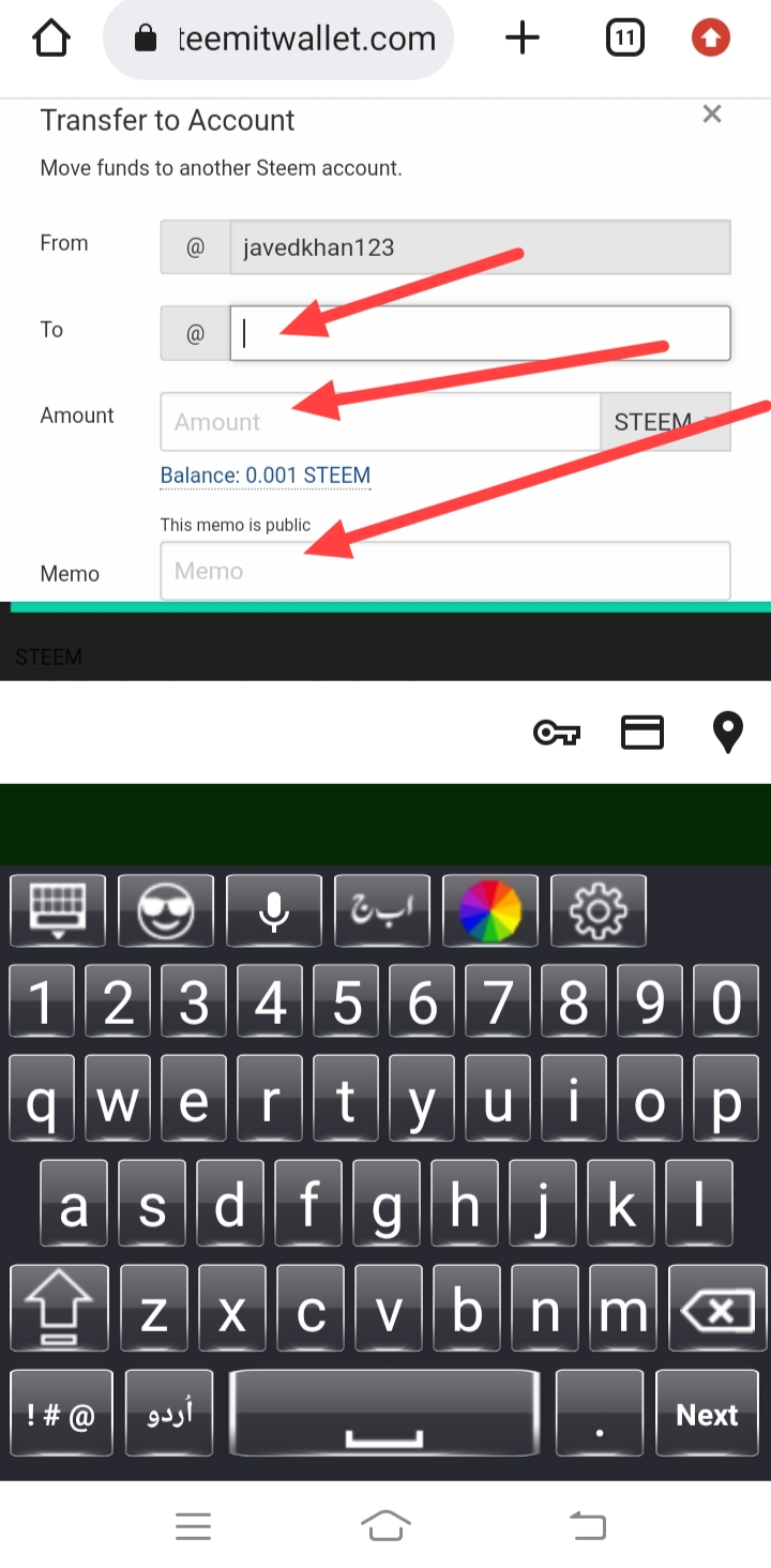 Here write the name of the user to whom you want to send your coins and enter your amount.