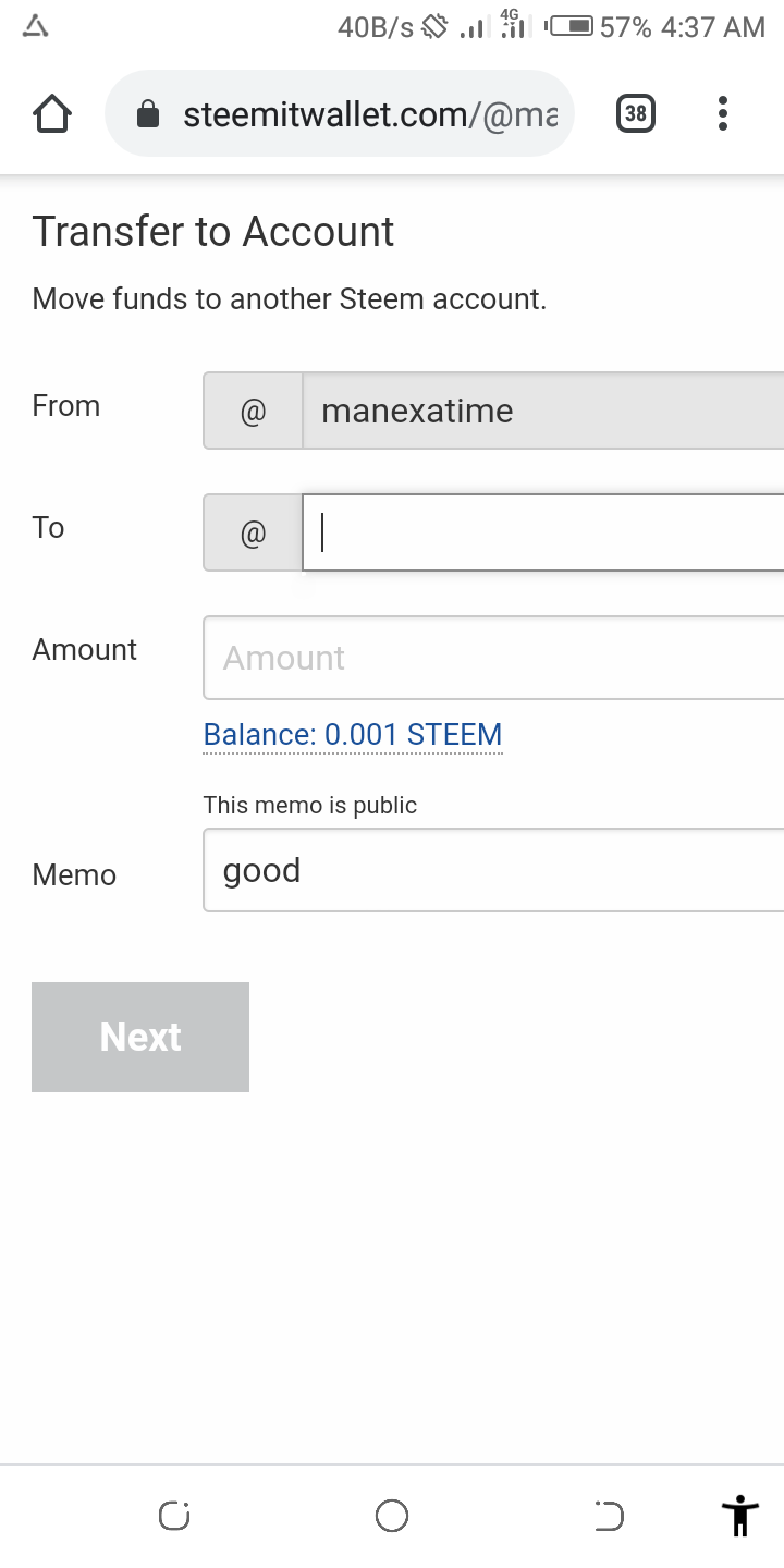 after this you will click on next to proceeds to another page where you will be able to transfer the steem.