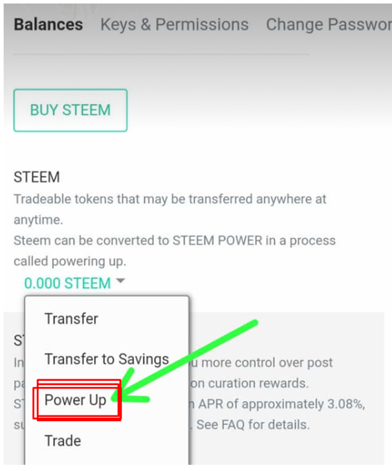 • From your profile, click in your wallet. • Select the power up option by clicking the drop-down arrow in your steem balance.