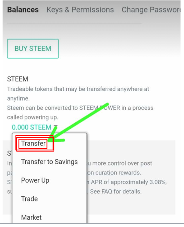 • After logging in, select "wallet." • Select "Transfer" and enter the desired amount before clicking the drop-down arrow next to the steem or sbd balance.