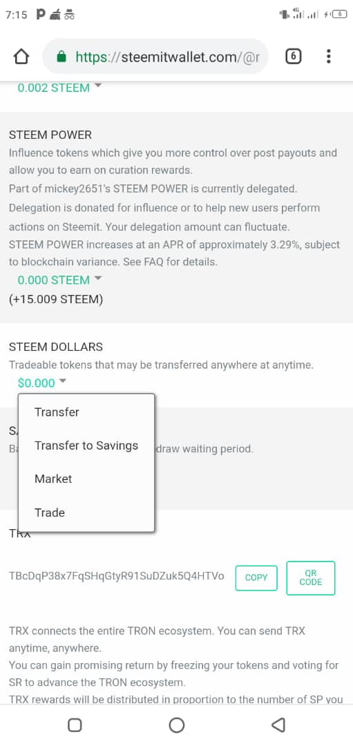 then I clicked on the small arrow beside my STEEM dollar balance and then selected transfer .