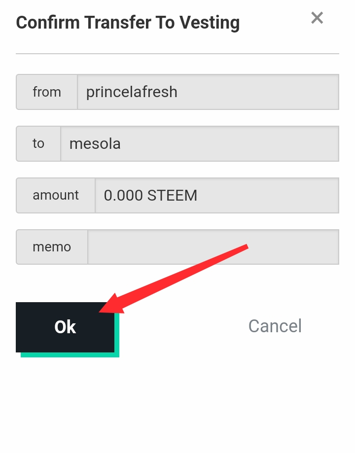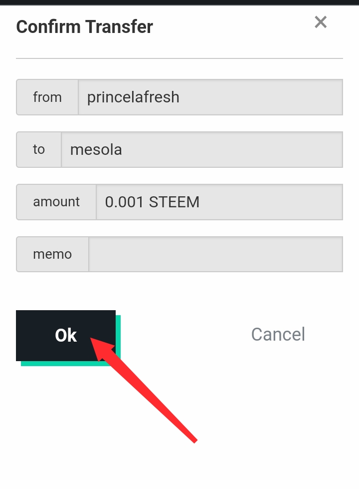 I will first of all put the username of the person that I want to transfer to and the amount of steem that I want to transfer, then I click Okay, then I will validate the transaction with my active key then I'm good to go, I will now click on confirm transfer then click okay.