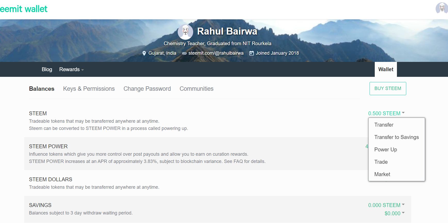 2.on highlighted steem option you will see an arrow pointing downward click on it.