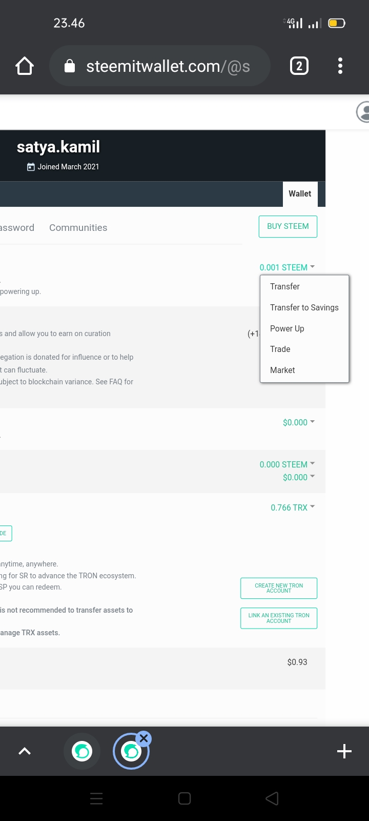 Sekarang, selain nomor, ada menu dropdown; klik tombol itu untuk membuka menu tarik-turun. Mentransfer token Steem ke akun steem lain adalah pilihan terbaik.