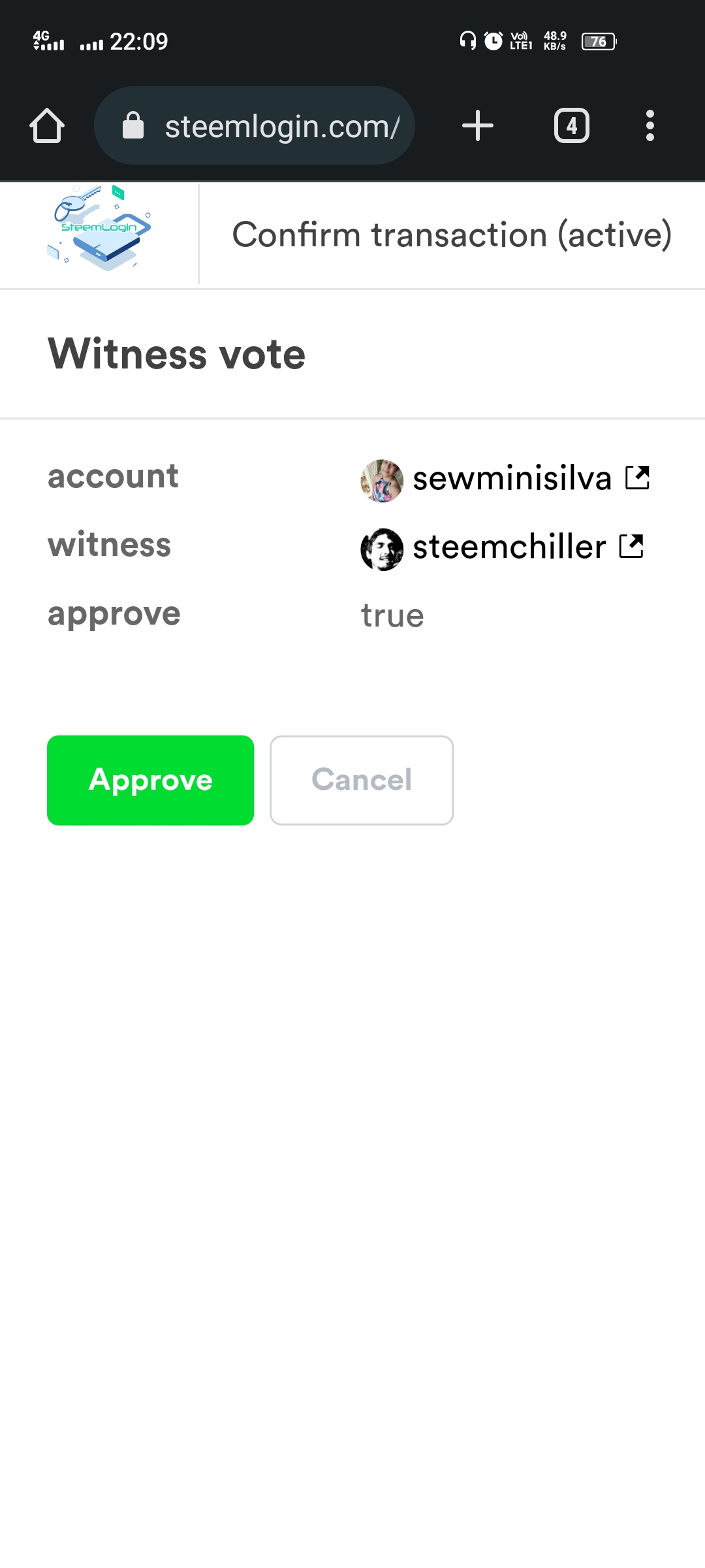 Then by clicking on approve we have the ability to vote.