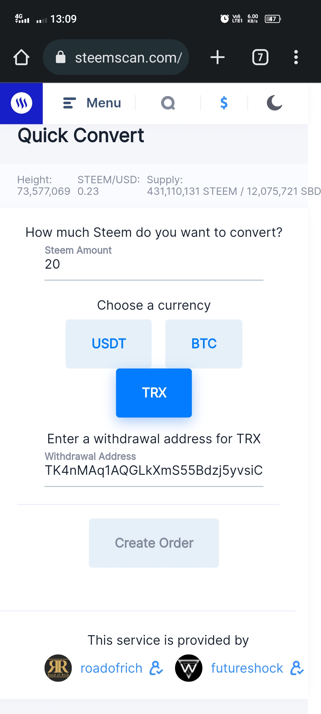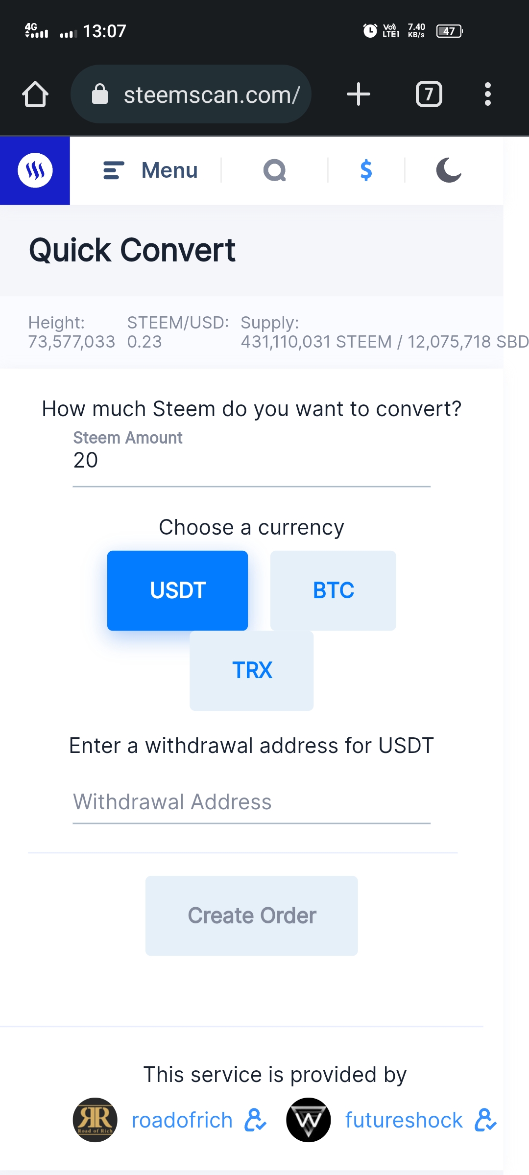 This is a special feature that we can see in this application. Here we can easily convert our steem coins into other coins and tokens. Here we have to submit to a certain conversion process.