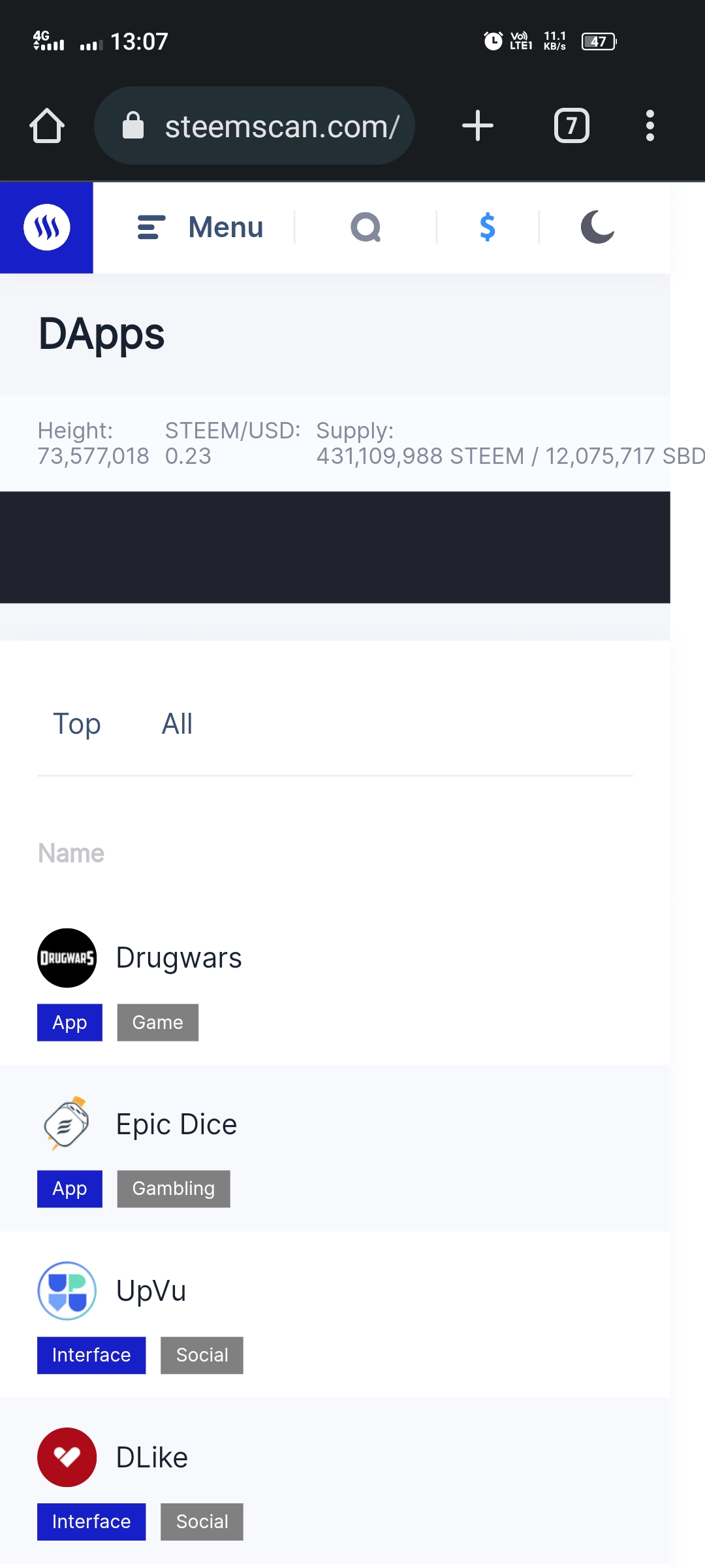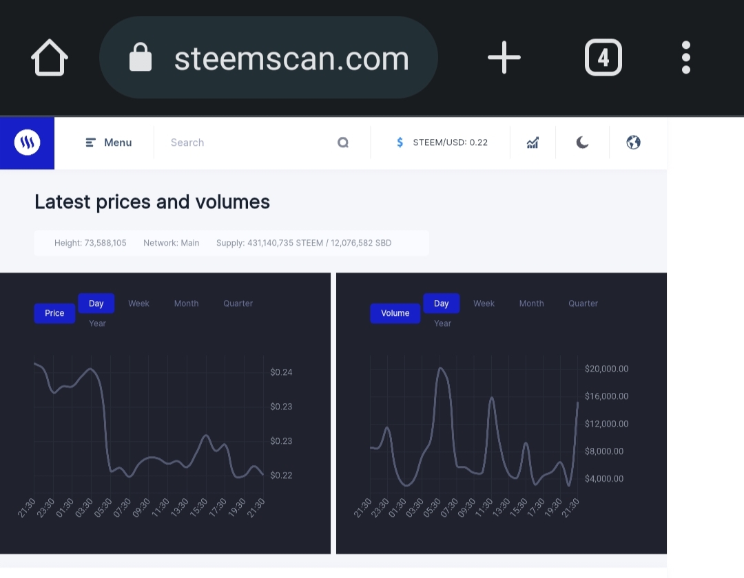 So guys we can check steem prices and volumes accurately using this application. So this application is a very important application for all steemit users. So by using this application we can take care of all transactions very reliably. After visiting the steemscan.com website, we can monitor the prices in two graphs.