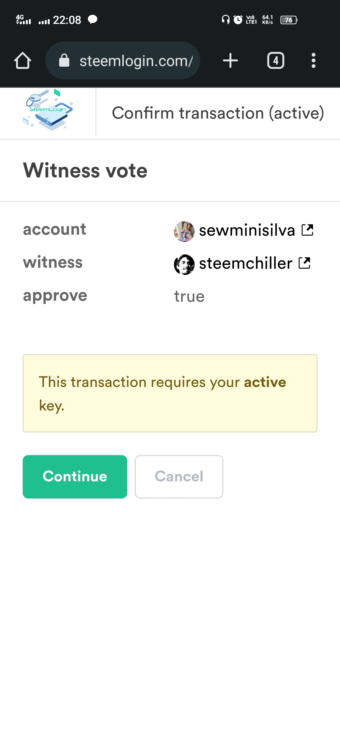 After that enter our steem username and active password.