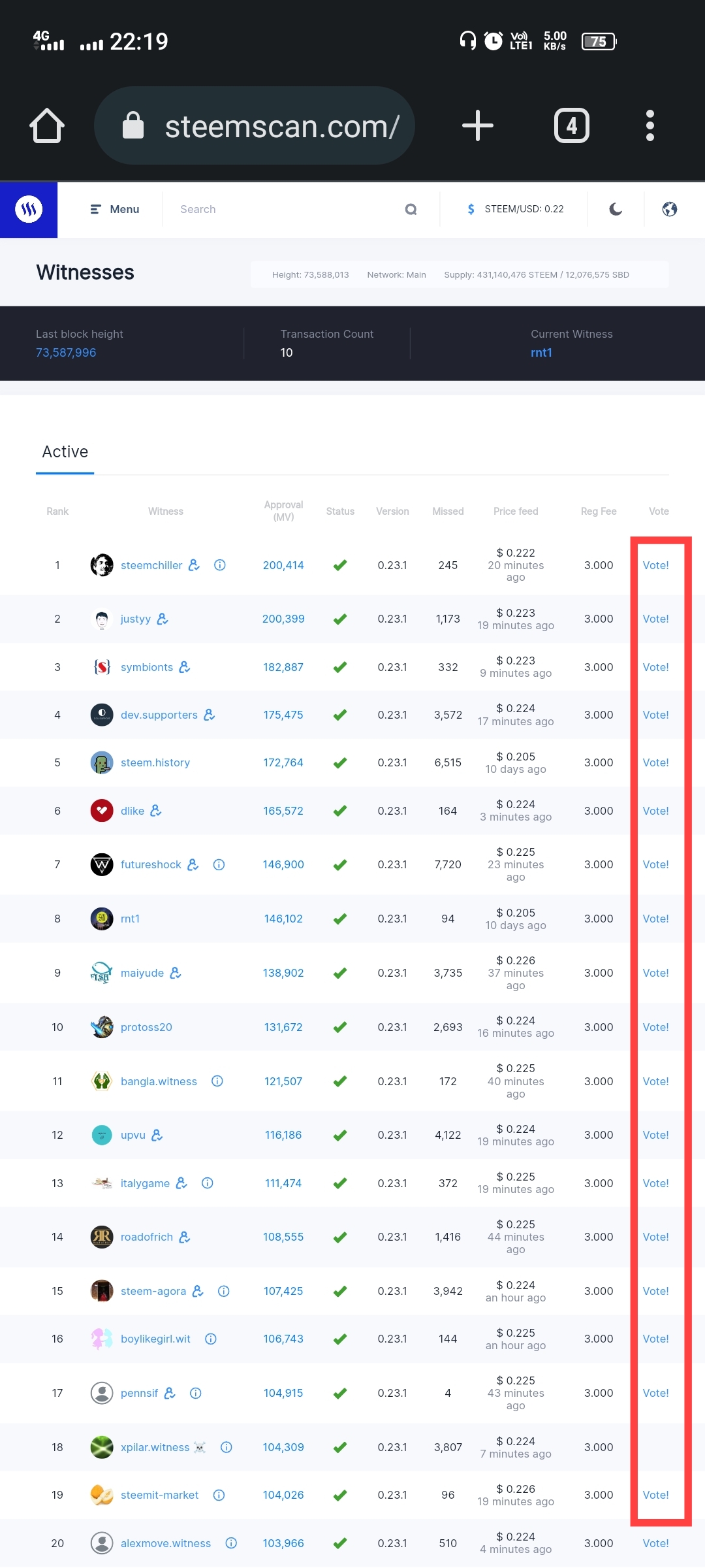 Here we must be logged in with the username and password of our steemit account and if we want to vote for someone here, we can vote by clicking on vote.