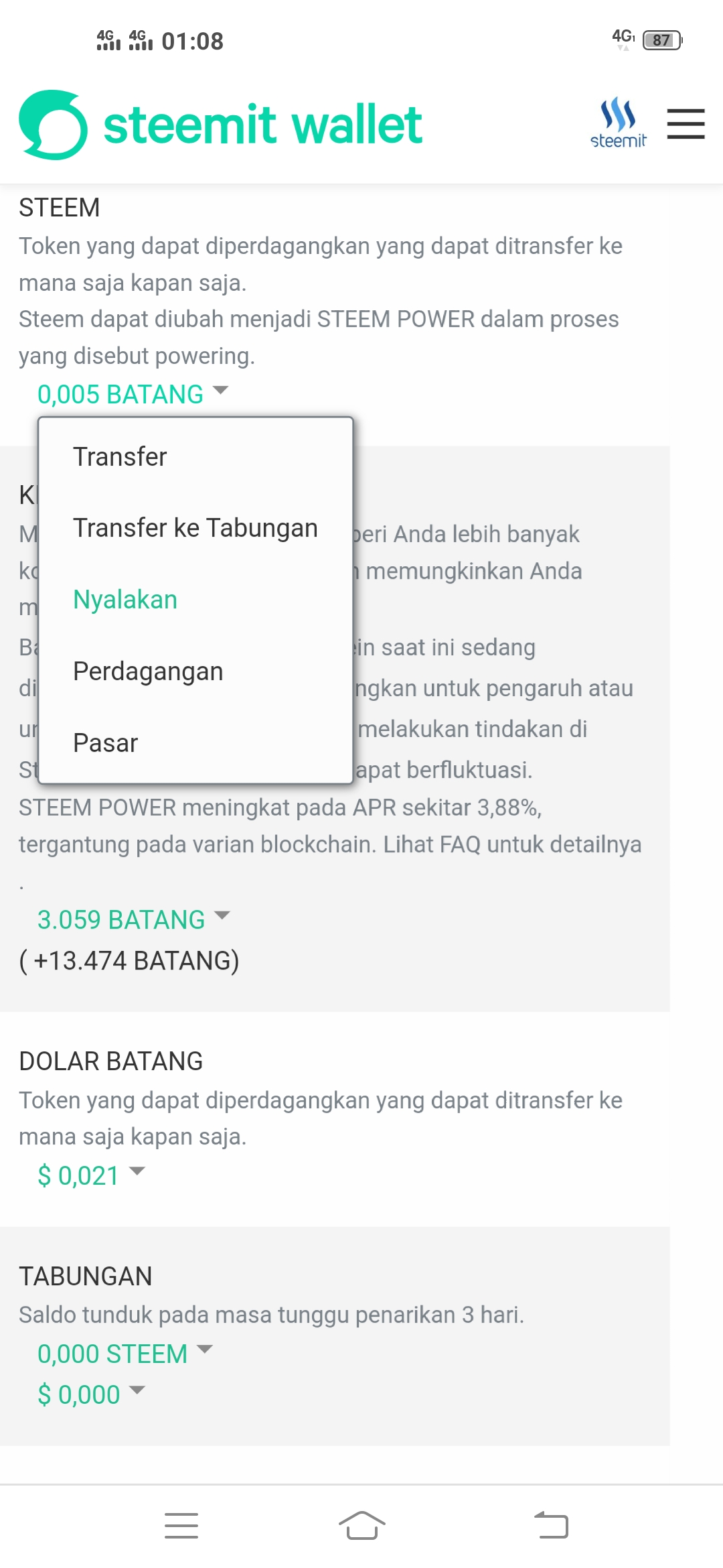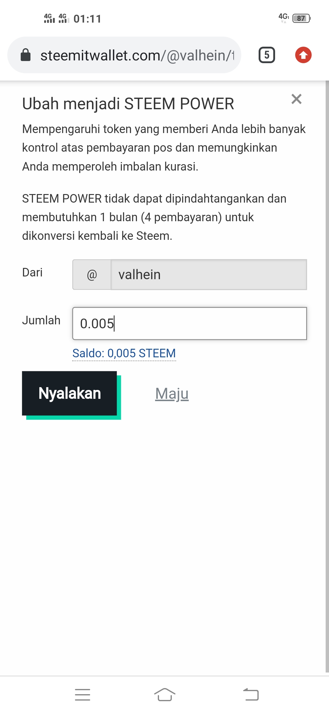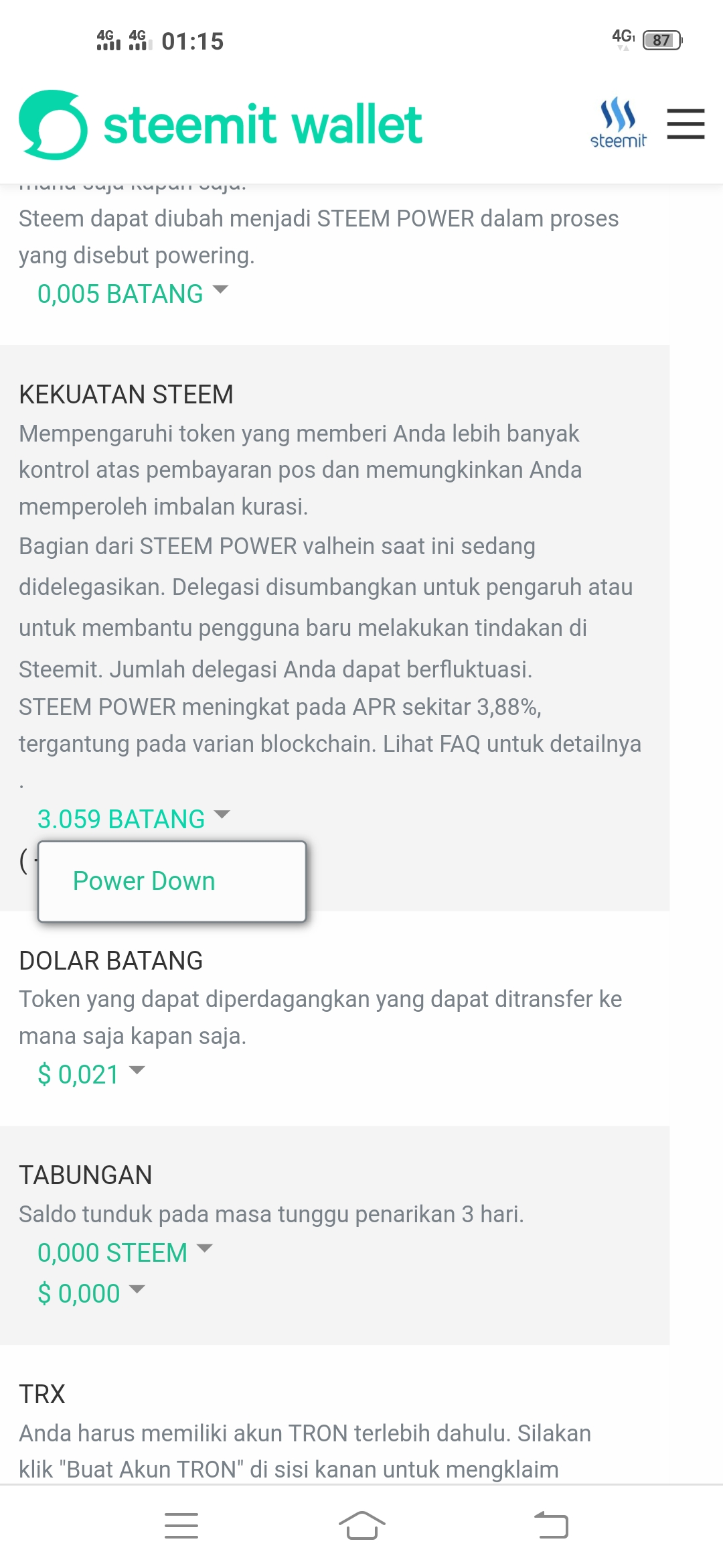 Dan setelah itu kita tinggal menunggu beberapa saat sampai proses Power up selesai dan cek kembali wallet anda.