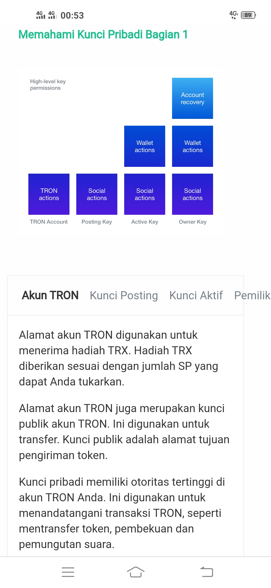 Posting key Kunci ini saya digunakan untuk memposting, berkomentar, dan memberi suara. Kunci ini memiliki sekumpulan izin terbatas dan tidak dapat digunakan untuk tindakan moneter. Jadi saya tidak dapat kehilangan uang jika orang lain mendapatkan akses ke kunci ini.saya menggunakan kunci ini untuk masuk ke jejaring sosial lain yang didukung Steem seperti Steemit,ecency,blurt,blog dan Hive.blog.
