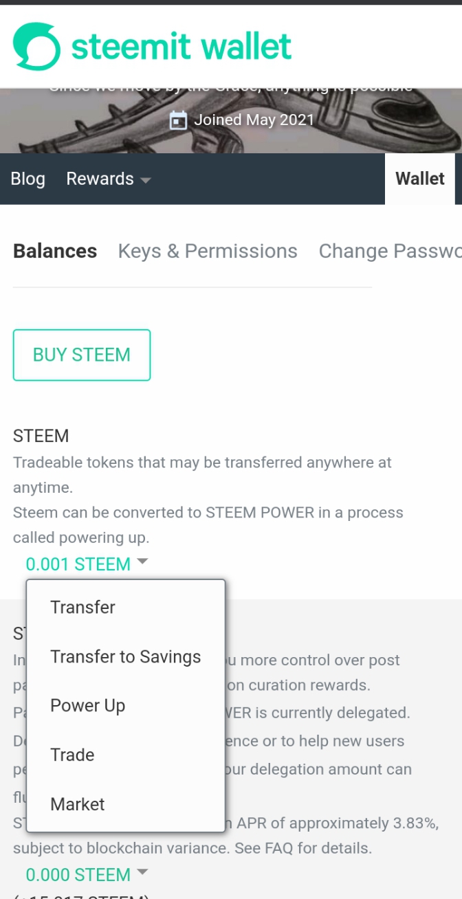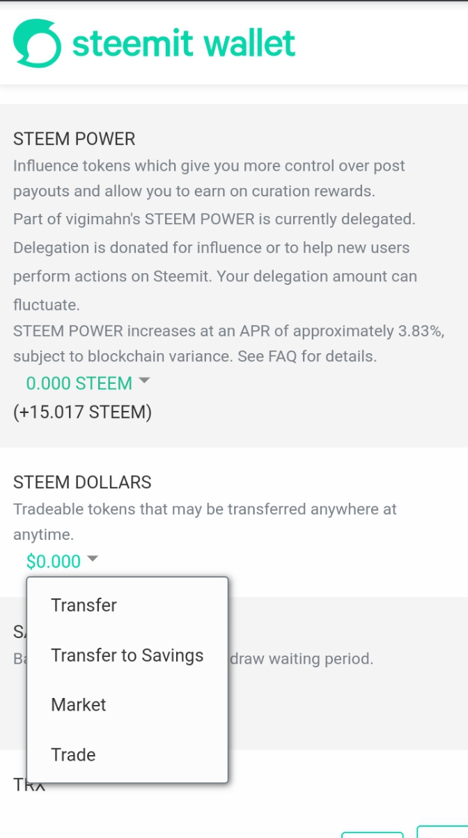 - Click on the down-pointed arrow under Steemit dollars
