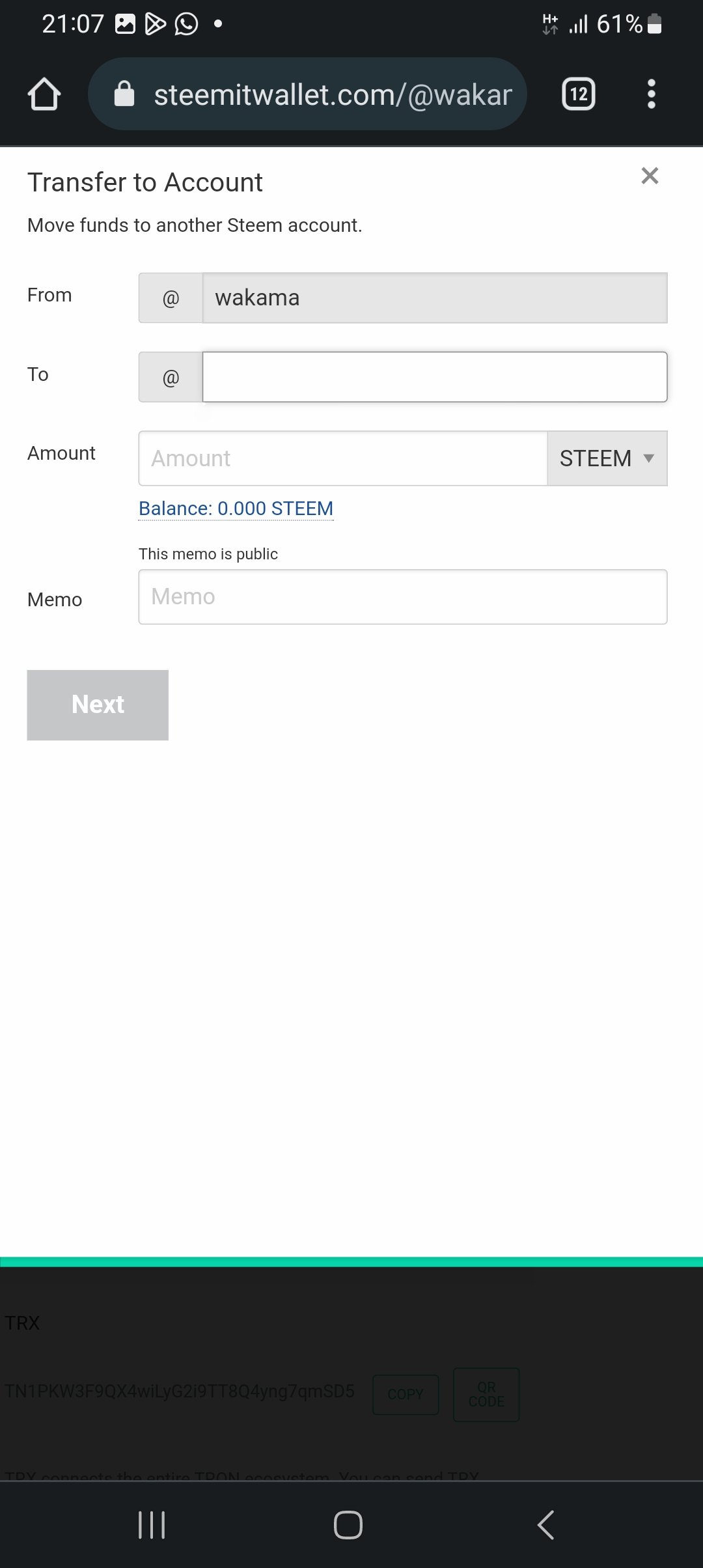 Put the amount you want to transfer, the receiver user name, amount and memo then you click next
