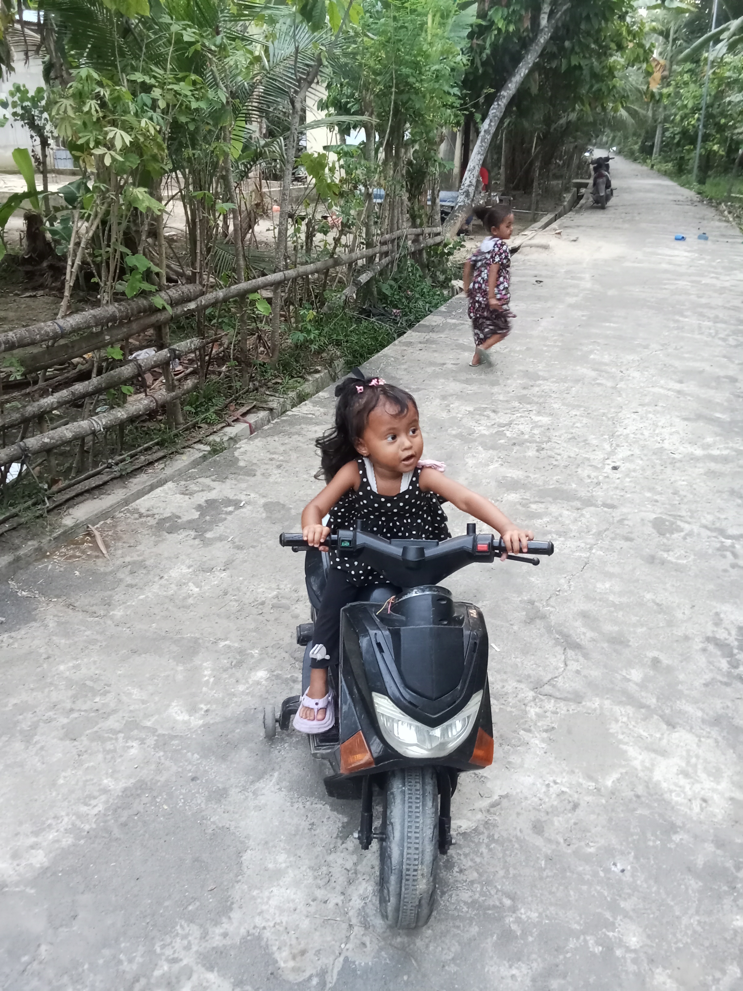 Ya saya makan martabak nya sama bocil ni, abis makan martabak saya dan bocil mau ajarin dia naik motor dulu , hari pun sudah sore , tapi gak terlalu panas lagi . Udah gak terlalu males keluar lagii , saya ajarin nya di dalam lorong aja supaya gak terlalu kenak matahari kan disekitar rumah saya banyak Pohon -pohon nya sih .