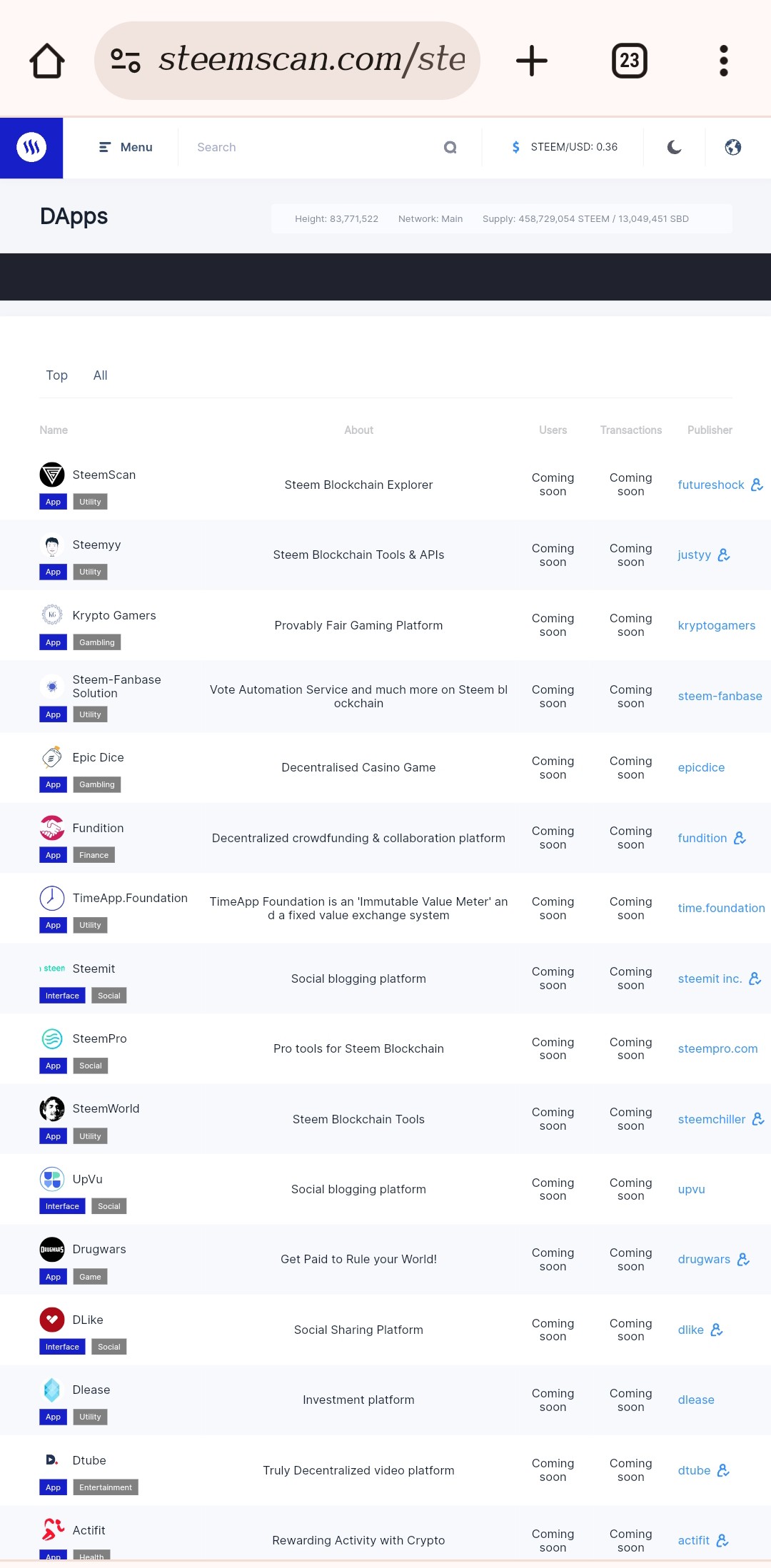 DApps: It contains the list of Apps that are created to make our Steemit more enjoyable from entertainment to even games.