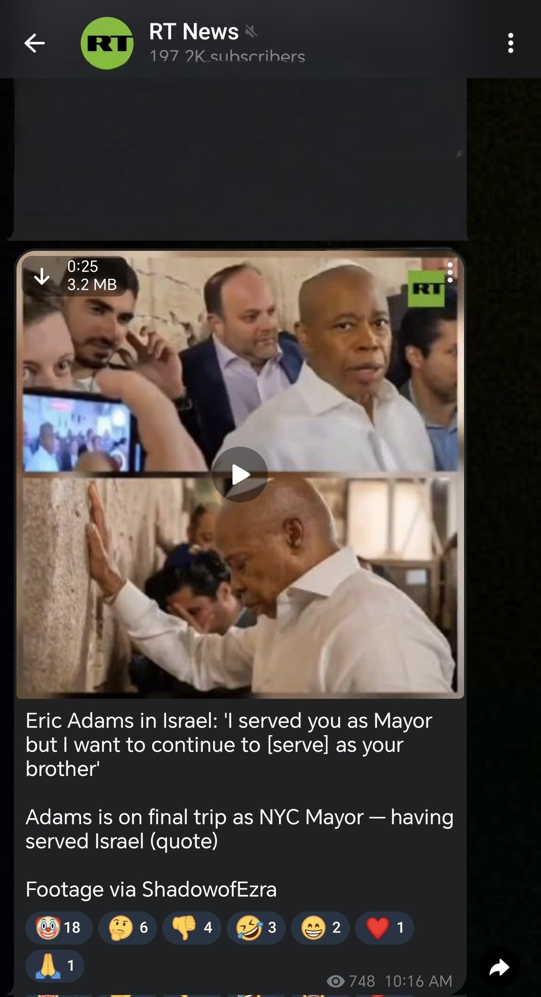 I saw in my Telegram feed a post shared by RT in which the former NYC Mayor Eric Adams is quoted that he had served Israel when he was mayor and now offering his services as a 'brother', not sure he meant brother to the 'state of Israel' or the 'Israelis', also not sure whether he's seen how the Israeli Jews consider Christians and how they describe Jesus Christ in their books!