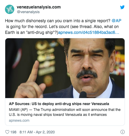 "President Donald Trump announced Wednesday that Navy ships are being moved toward Venezuela as his administration beefs up counter-narcotics operations in the Caribbean following a U.S. drug indictment against Nicolás Maduro," AP reports in an article packed with pro-US disinformation.