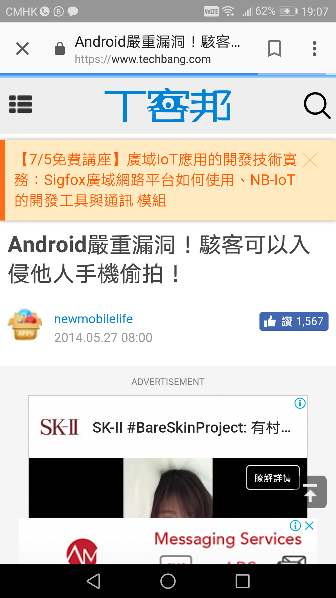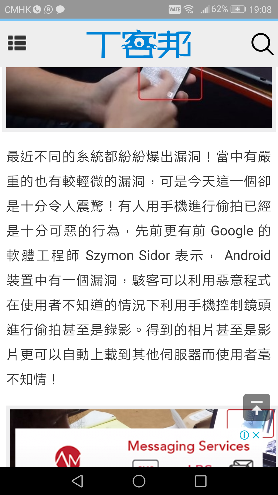 因有聽眾,故此亦隨即拋拋書包,道出在2014年Google的Android手機出現漏洞,讓黑客可藉此入侵手機透過前置鏡頭偷偷拍攝。