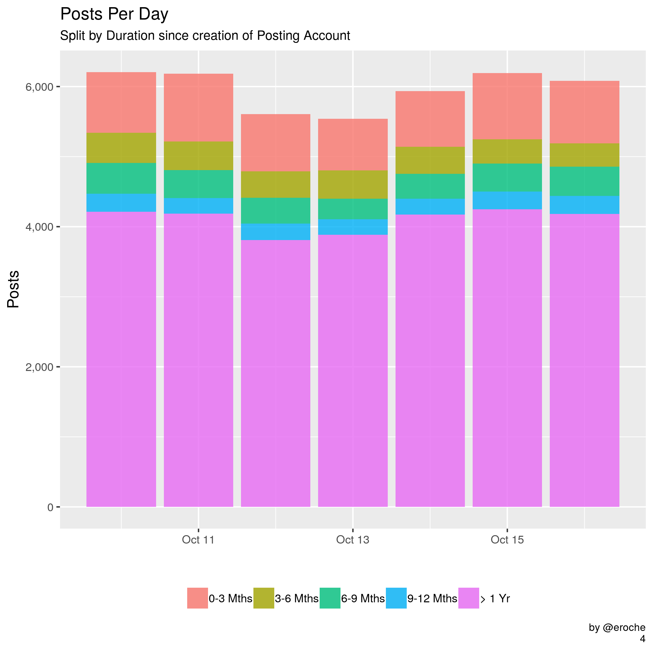 - The Posts over the last week show that most of the posts have been made by Accounts that have been around for over 1 year.