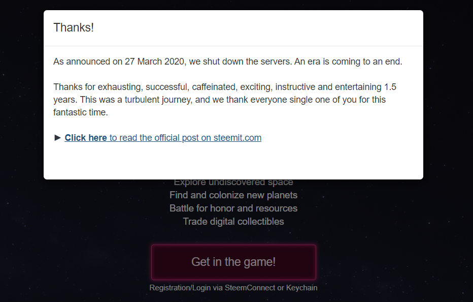 Nextcolony is done?!nullandvoid (-8)(1)in #nextcolony • 6 years ago :( I find that nextcolony is shut down now. I really loved this game and was coming back to it finally and now it is gone for good! :( I am sad now...... #game #gaming #shutdown #end