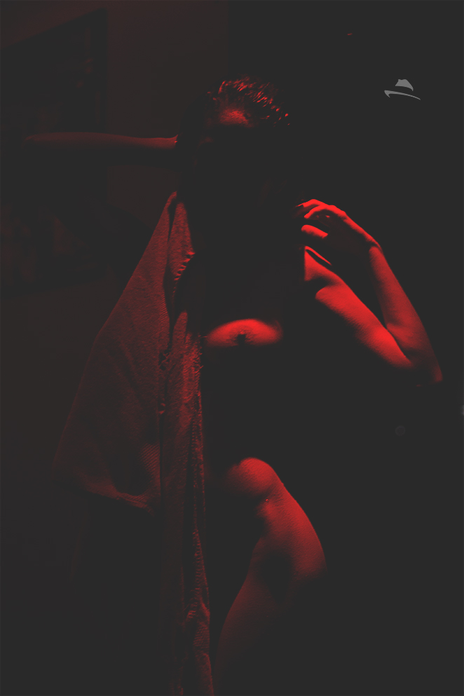 Esa es la pregunta que me hice mientras realizaba tus fotografías esa pequeña luz roja casi imperceptible al ojo pero de alta intensidad al hacer la foto, resaltando partes de tu cuerpo que está mojado erizado por el frío de la habitación, senos grandes pezones erectos altamente tentadores y provocativos, queriendo saborearlos pero controlando las ganas porque no estamos solos...