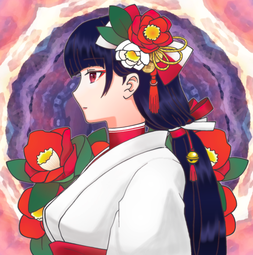 탄생화, 동백꽃 말로부터 「소중한 훌륭함」 「기분 없는 우아함」을 바탕으로, 무녀씨가 떠 있었으므로 그렸습니다.