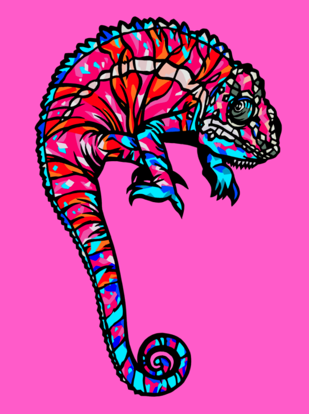 치기리 그림의 선명한 색조와 그 불규칙함으로 〝입체〟를 표현.