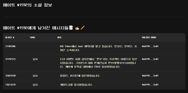 메이트를 구입하게 된다면 클레이튼 지갑에 메이트를 소유할 수 있습니다. 누군가 자신의 메이트를 사칭할 수 있지만 '진짜 메이트'는 본인에게 있음을 증명할 수 있습니다. 그것이 NFT의 특징입니다. 또한 메이트를 자신의 SNS 프로필로 설정해서 사이버 상의 또다른 나를 표현할 수 있습니다. 메이트의 또다른 기능을 알아볼까요?